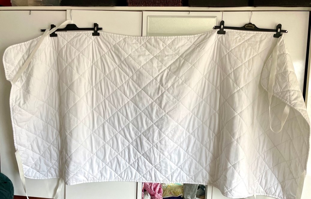 Tamamı pamuklu kumaş, içi elyaf dolgu. Su geçirir. 88-192 cm ölçü. Lastiklerinde çürüme yok ama gevşemiş. Son üç fotoda tek tarafındaki olan 2 minik leke ve bir delik var. Bunun dışında tertemiz. #İçiDolguluTekKişilikAlez #TekKişilikAlez