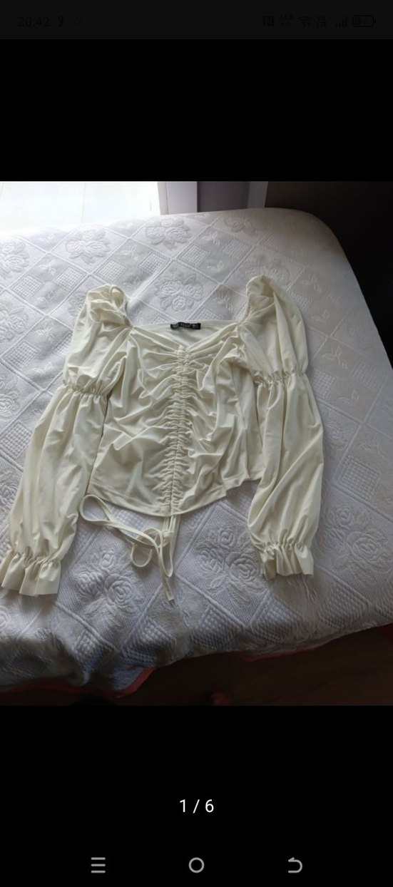 Beyaz Drapeli Kadın Bluz