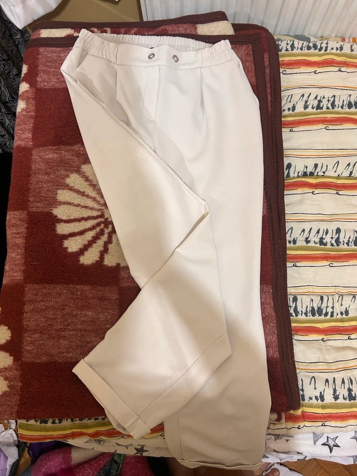 Beyaz Drapeli Kadın Kumaş Pantolon