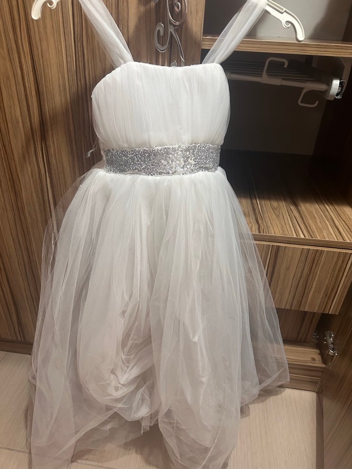 Beyaz Drapeli Kız Çocuk Abiye Elbise