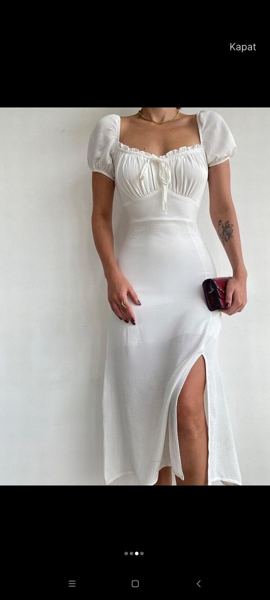 Beyaz Drapeli madonna prenses yaka midi elbise