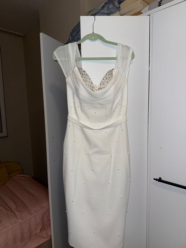 36 beden Carmen marka nişan elbisesi. Vücudu sarıyor ben bayılarak giydim nişanımda. Kuru temizleme yapıldı giyilmeye hazır
