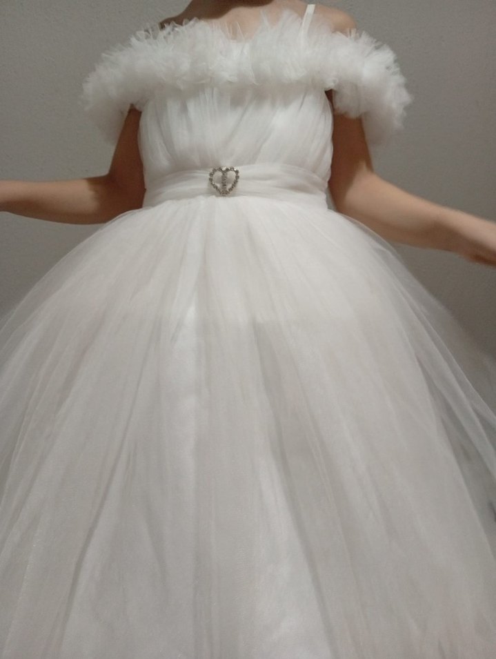 Beyaz Drapeli Straplez Kız Çocuk Abiye