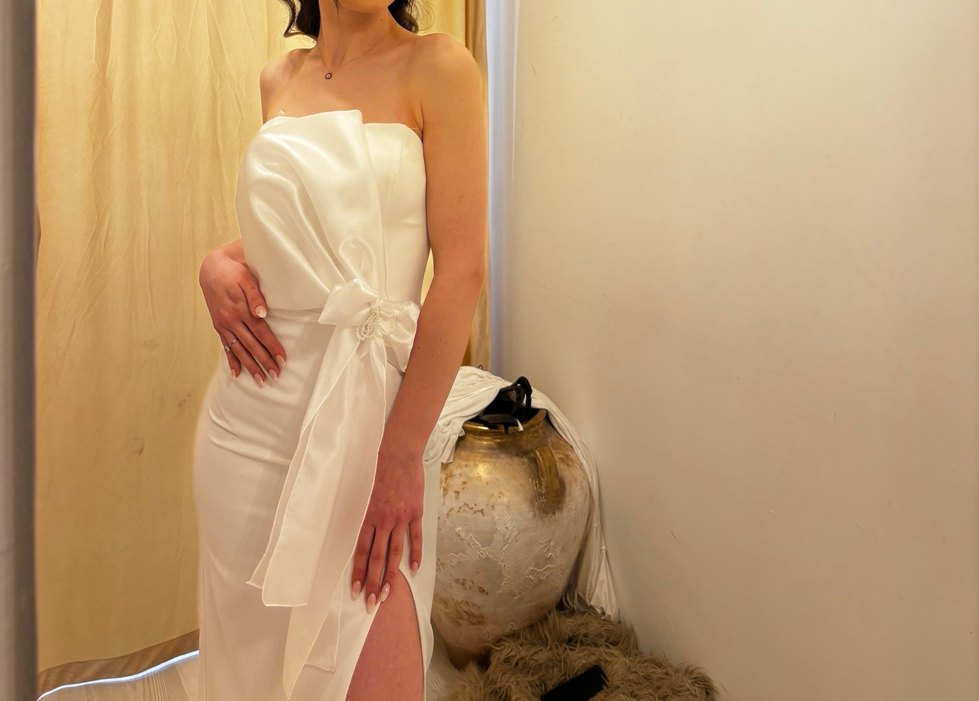 Beyaz, straplez, drapeli ve yan yırtmaçlı bu uzun abiye, klasik şıklığı modern dokunuşlarla buluşturuyor. Söz-Nişan davetlerinde kullanılabilecek abiye elbisedir. Kendi nişanımda kullandım, temiz kullanılmış deformesi vs yoktur. Sedef Gelinlik Marka