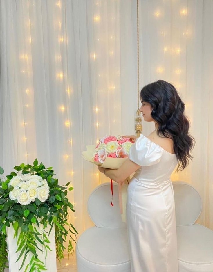 Beyaz, straplez yakalı, drapeli ve çiçek desenli uzun abiye elbise. Minimalist ve bohem tarzı strappy kollarla klasik şıklık sunar. Düğün için uygundur. Sadece bir kez nişanda giyilmiştir hiçbir deformesi yoktur tertemiz kısaca yeni etiketli