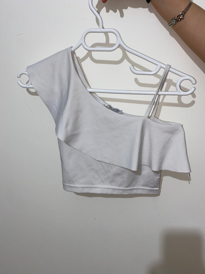 Beyaz Drapeli tek omuzlu crop