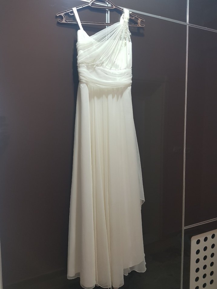 Beyaz Drapeli Uzun Abiye Elbise