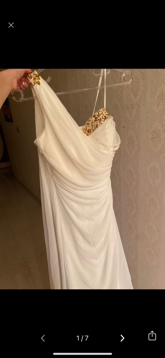 Drapeli ve straplez, beyaz uzun abiye elbise. Düğün ve özel geceler için modern klasik, vücuda oturan kesimle şık bir tasarım. Sadece 1 kere giyildi kız isteme söz nikahta giyebileceğiniz çok şık özel taş detaylarıyla ve rahatlığıyla giyebileceğiniz bir tasarım