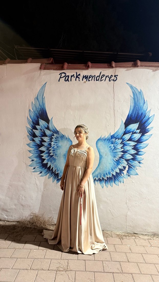 Beyaz Drapeli Uzun Abiye Elbise