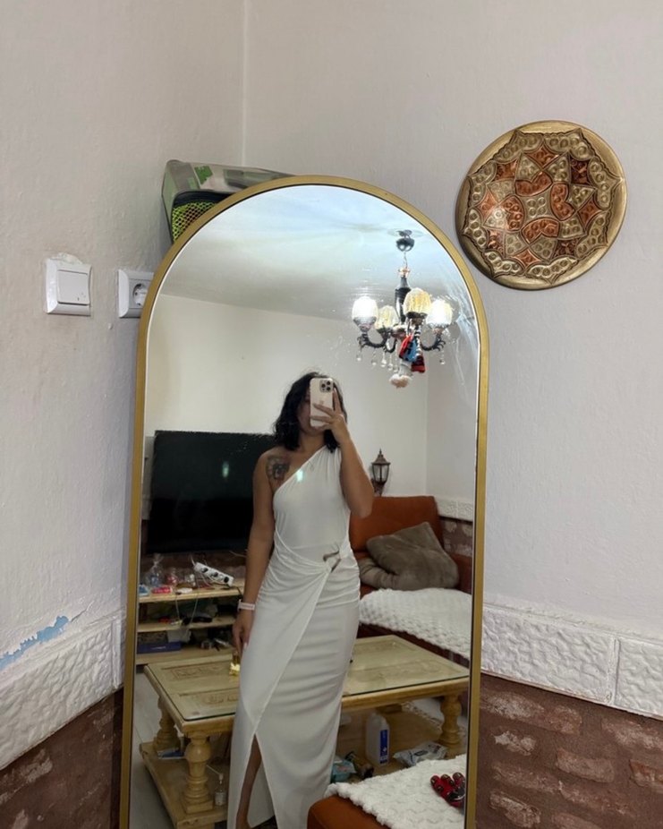 Beyaz Drapeli Uzun Askılı Abiye Elbise