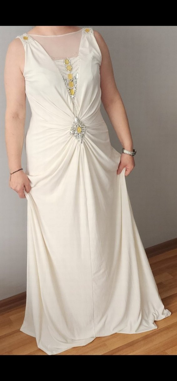 Beyaz Drapeli Uzun Hamile Abiye Elbise 42 44 46 uyumludur