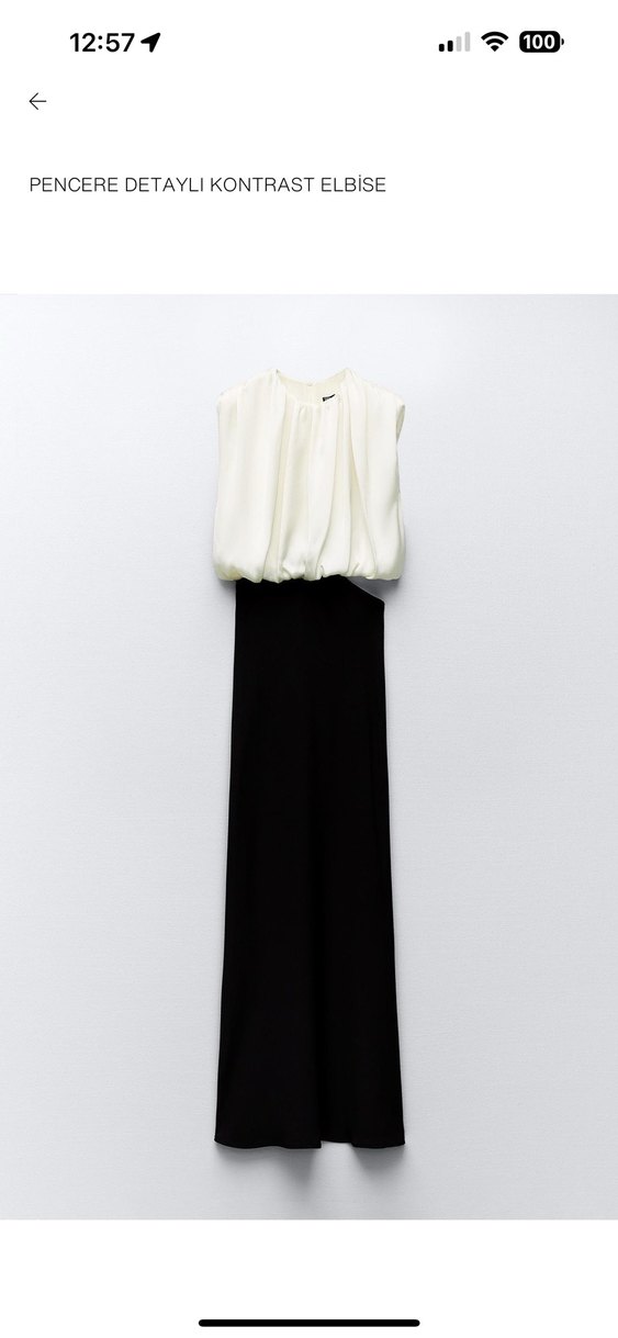 Zara Xs beden Drapeli, kolsuz beyaz üstü yüksek yakalı ve bol kesimli, koyu renkte desensiz uzun etekli elbise. Çağdaş tarzıyla ofis için uygundur. Hiç kullanılmamıştır.