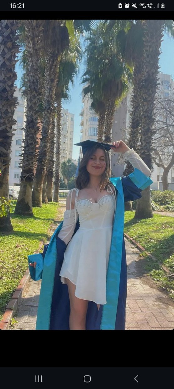 Beyaz Drapeli Uzun Mezuniyet Elbisesi