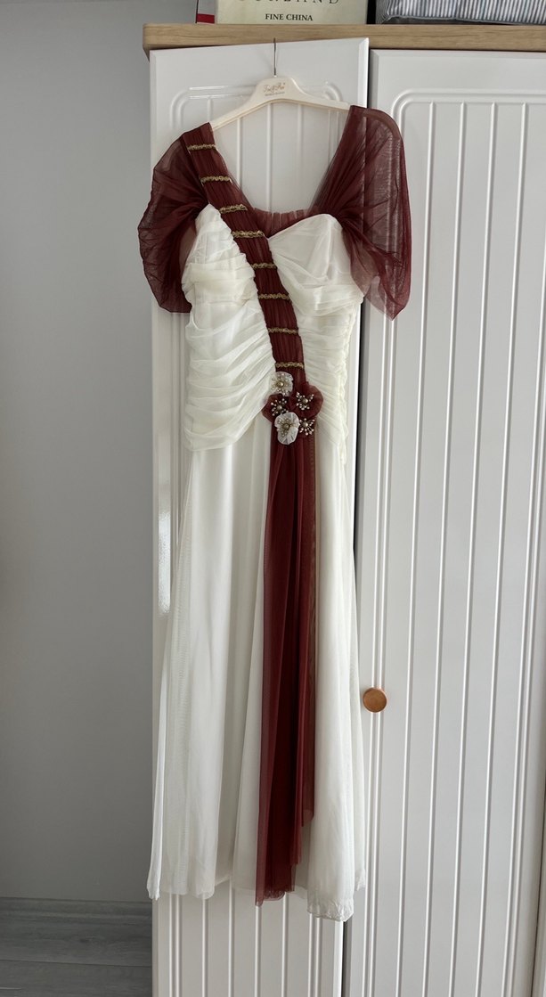 Beyaz Drapeli Uzun Straplez Kadın abiye