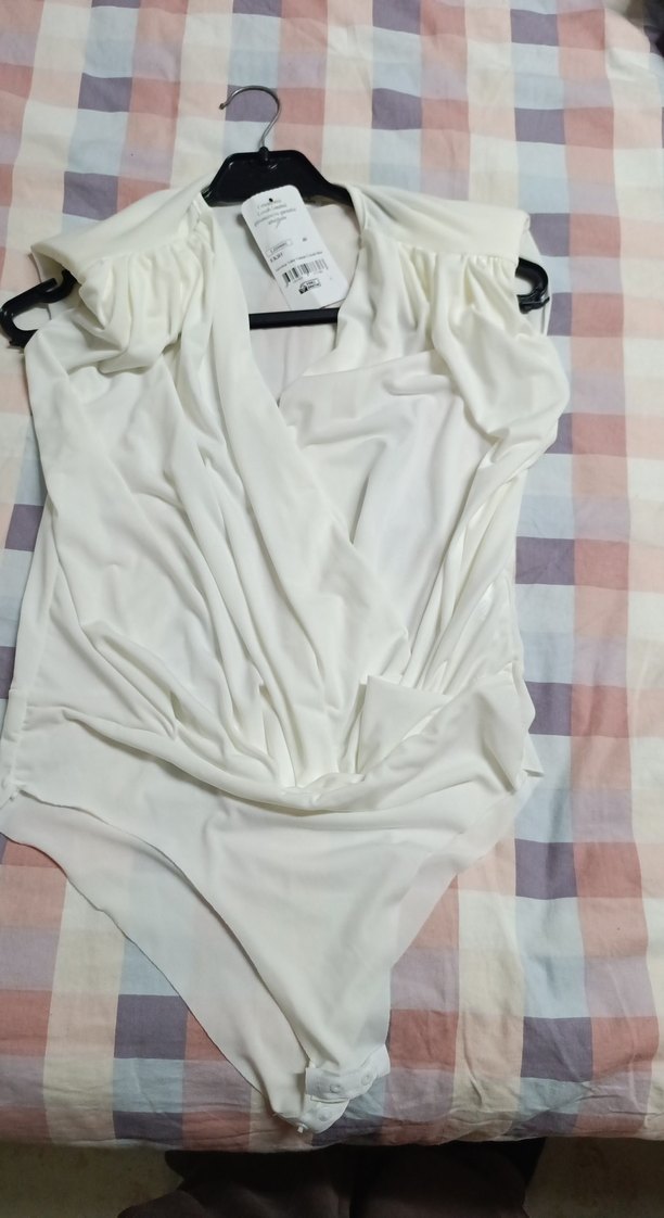 Beyaz kolsuz bluz, drapeli tasarımı ve V yakası ile şık bir görünüm sunar. Yumuşak sentetik kumaştan, günlük sokak stiline uygundur.