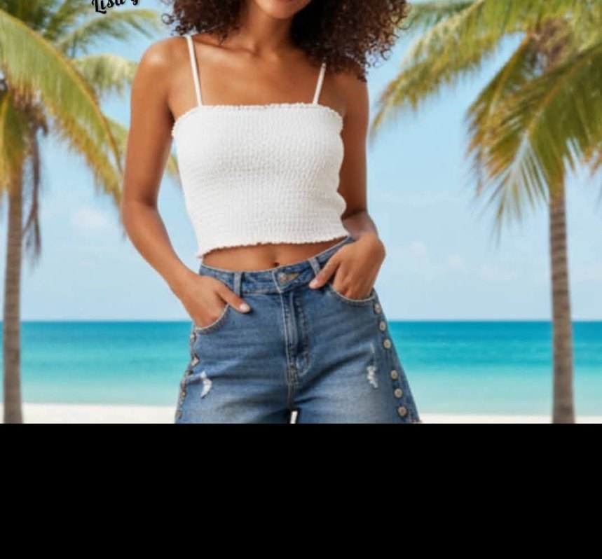 Beyaz askılı, crop top. Rahat denim kumaştan, hafif batik desenli 4 tanesi 100 tl standart kesim her bedene uygun