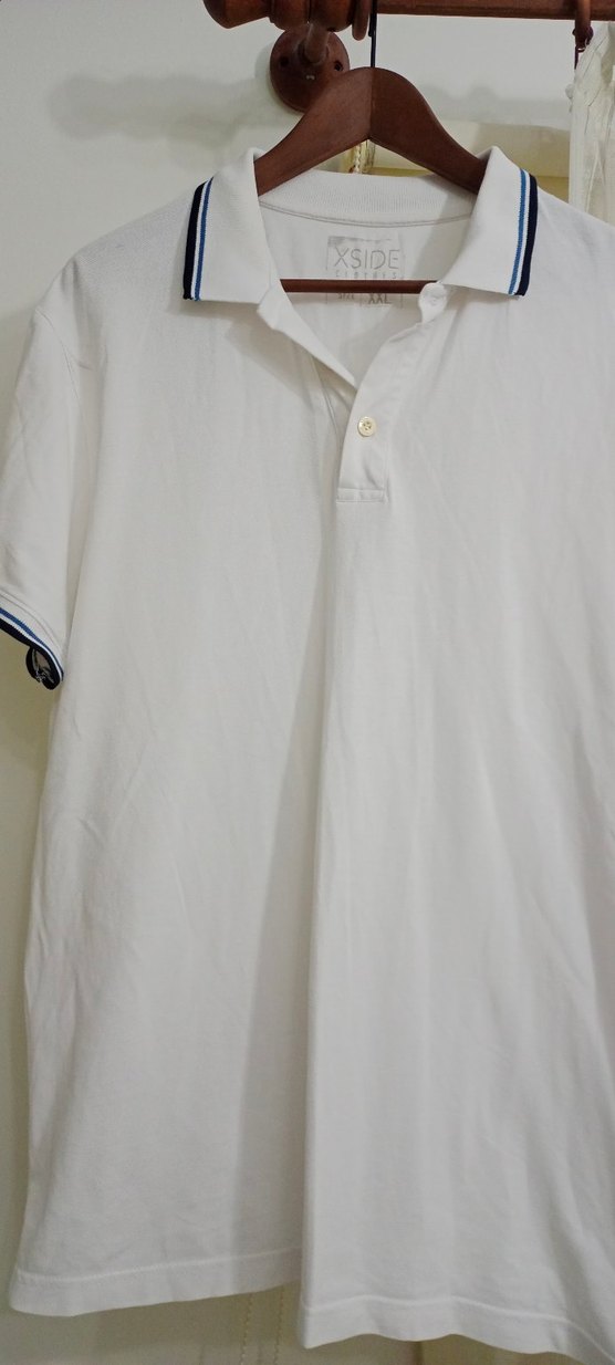 Beyaz renkli, düğmeli yakalı erkek polo tişörtü. Kısa kollu, pamuklu ve rahat kesimdir. Günlük sokak stili için uygundur.