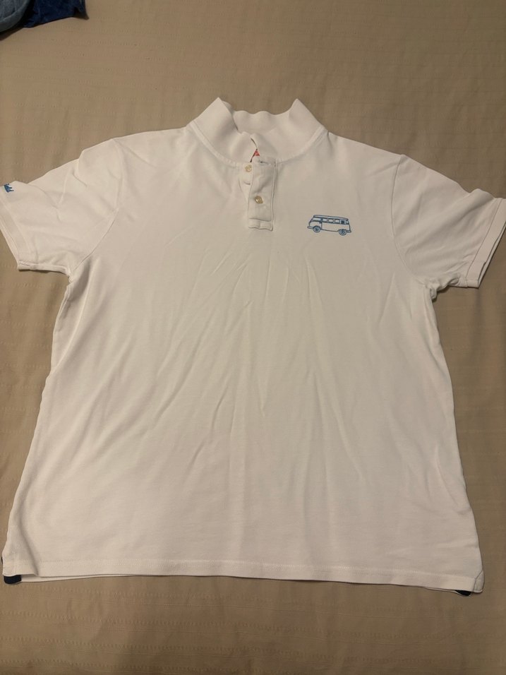 Yumuşak pamuktan yapılmış, kısa kollu, düğmeli yakalı ve baskılı küçük detaylı beyaz erkek polo tişörtü. SPX mağazasının kendi markası, mağazasından alındı. Çok az kullanıldı. Hasarsız ve temiz üründür. Ölçüleri görsellerde var.