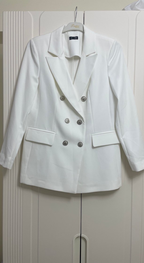 Beyaz Düğmeli Kadın Blazer Ceket