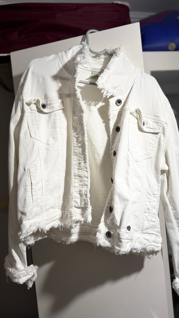 Beyaz Düğmeli Kadın Denim Ceket