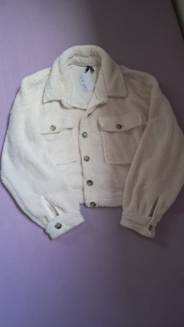 Beyaz düğmeli midi ceket, uzun kollu ve kesik yaka detaylıdır. Yumuşak ve sıcak tutan kumaştan yapılmış, rahat kesimiyle günlük sokak stiline uygundur. Rahat ve pastel tonlardadır.