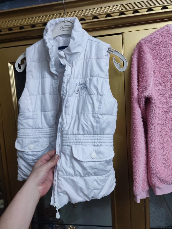 Düğmeli, straplez yakalı, parlak beyaz renkli kız çocuk yeleği. İnce kesimi ve sıcak tutan dokusuyla rahat bir kullanım sunar. ikisinin fiyatı