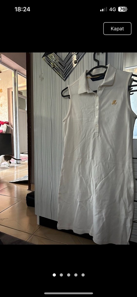 Pamuk kumaştan yapılmış, kolsuz, düğmeli ve yakalı beyaz elbise. Trendy sokak stiline uygun, sade ve dar kesim.