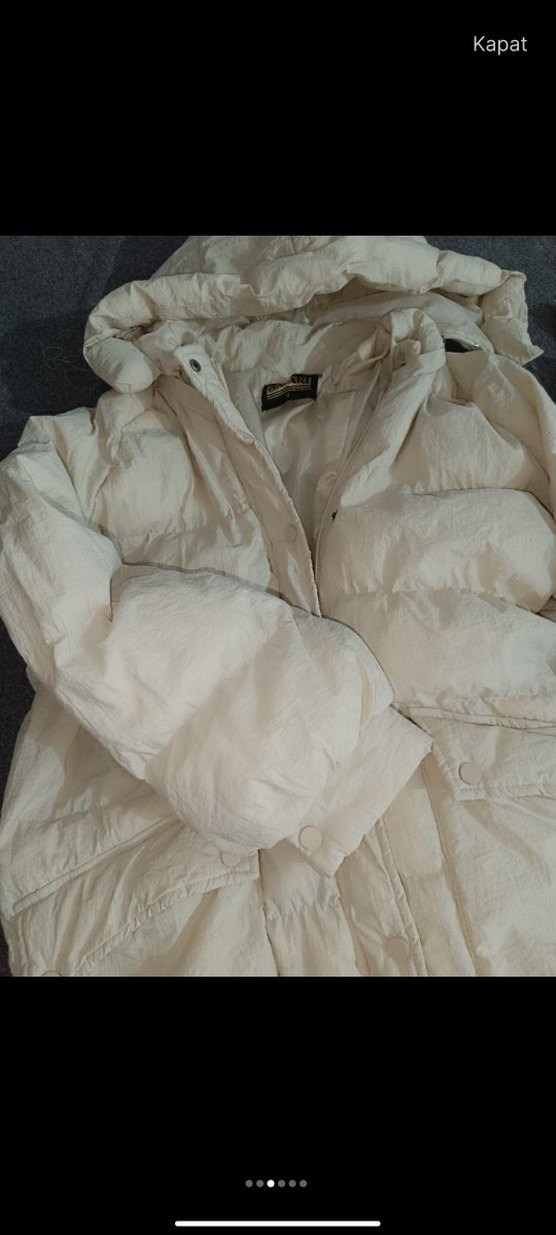 Beyaz renkli, uzun kesim kadın kışlık mont. Düğmeli, geniş kesimli ve keten kumaştan yapılmıştır. Yaka tipi kesik yaka, uzun kolludur. Sokak stiline uygun, sade ve parlak görünümlüdür. ❄️ Arkadaşlar montu 2 ya da 3 kere giymişimdir onun dışında başka bir montum ve kabanım vardı ayrıca mont çok sıcak tutuyor