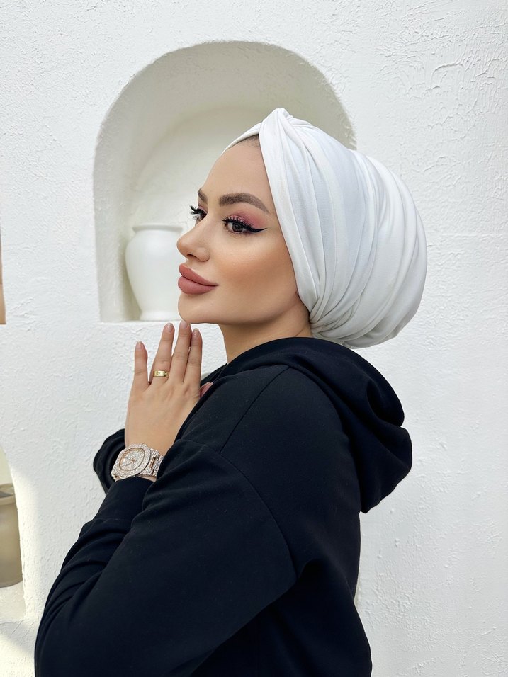 Pamuklu beyaz kumaştan, drapeli tasarıma sahip, hafif ve rahat kadın şalı, sade sokak stiline uygun.
