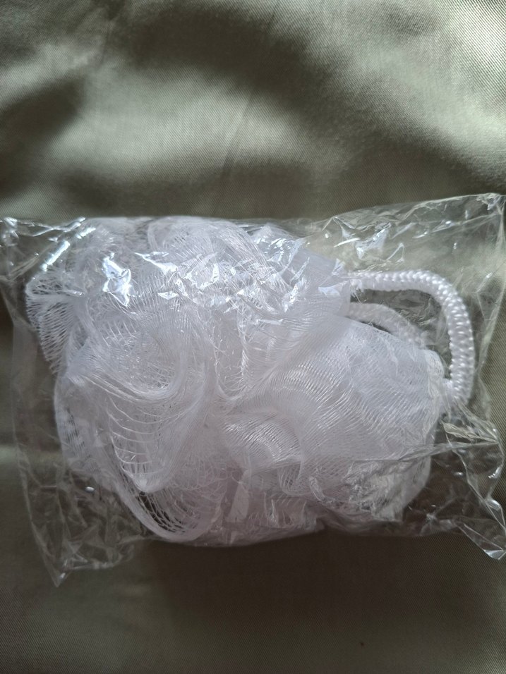 Yumuşak dokulu beyaz duş süngeri, kolay kullanım için askı ipliğine sahiptir. Nazik eksfoliasyon ve temizlik için uygundur.