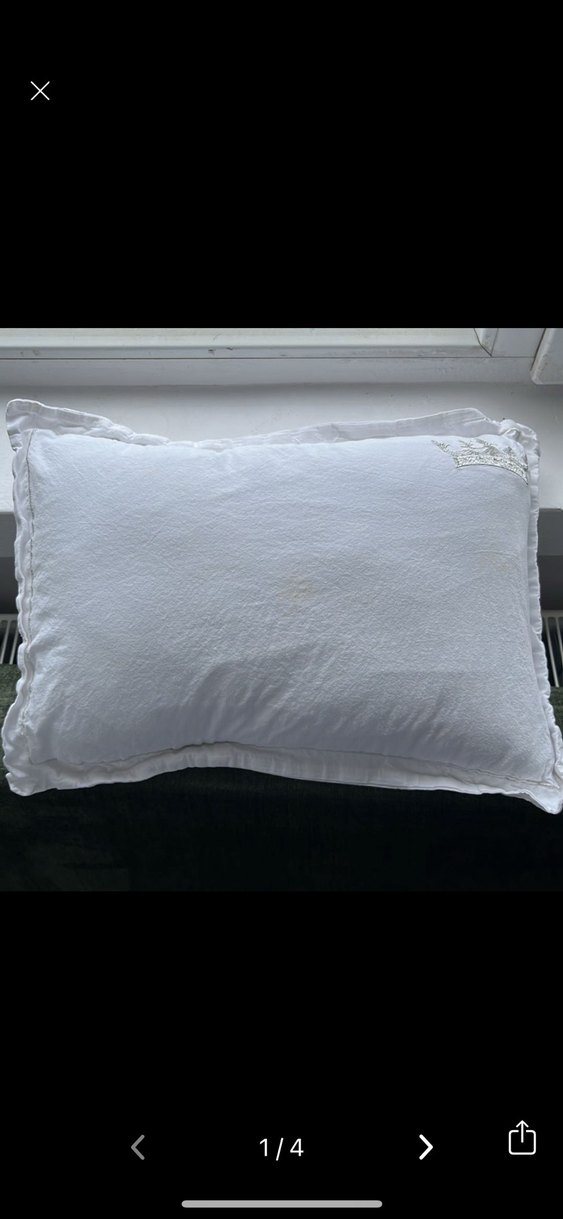 Düz beyaz yastık, zarif fırfırlı kenarlarıyla yumuşak ve konforlu bir dokunuş sunar. Dinlenmek veya dekorasyon için uygundur.marka temsili kenarında kral tacı işlemesi var