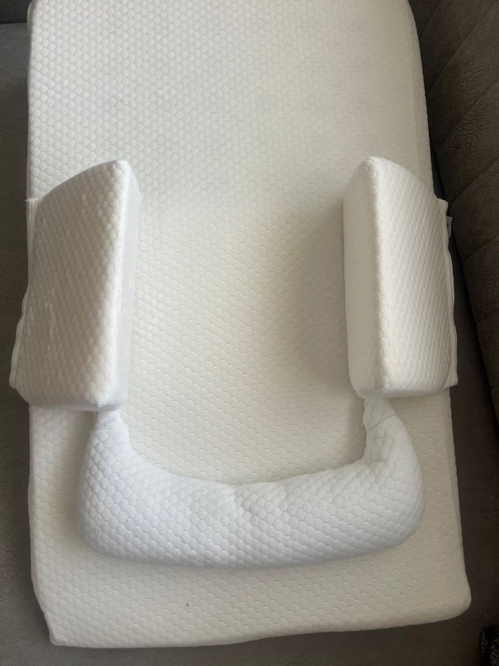 Gri tonlarda dokulu, düz beyaz hamile ve emzirme yastığı, konfor ve destek sağlar.
