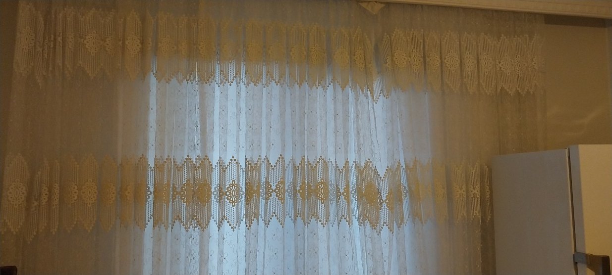 Hafif dekoratif detaylara sahip beyaz, klasik tarzda düz perde. Her odaya yumuşak bir dokunuş katar. ağır duran sık pıleli uzun perde boy 245.250 arası en de 3 metreden daha buyuk 3.bucuk olabılır tam ölçmedim bir kusuru yok 1.2 düğmesi düşmüştü sadece