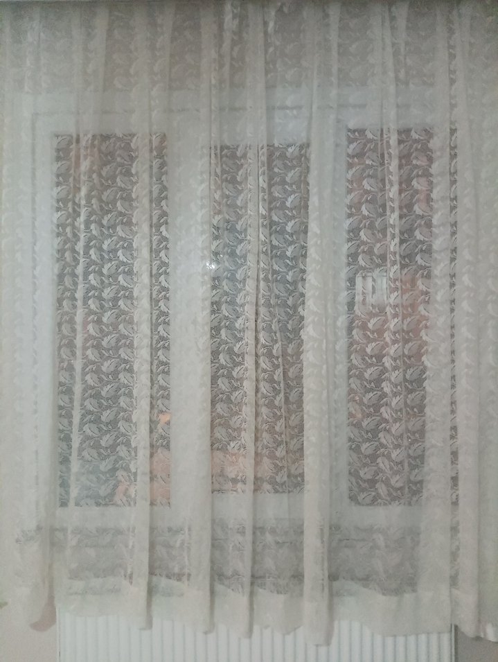Beyaz renkli, düz ve klasik tarzda tül perde. Doğal ışığın içeri girmesine izin verirken mahremiyet sağlar. tacın markası herhangi bir deposu yok az kullanmış 2 adet var perdeden ölçüsü eni 3 metre boyu 2 40