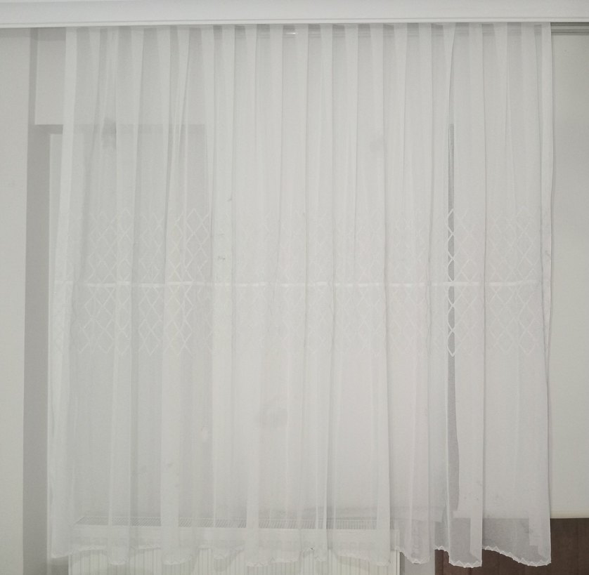 Hiç kullanılmamış tül perde Ortadan enlemesine eklidir 180 cm en, 195 cm yüksekliktedir (f52)