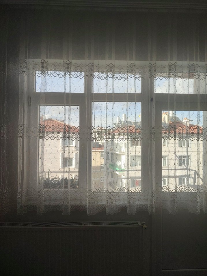 Hafif beyaz renkte, en 235 boy185 seyrek pileli petek üstü tül perde hiçbir sorunu yoktur yıka as fazlaliktan dolayı satiyorum