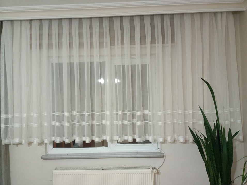 çok kaliteli tül kumaşa ve güzel bir duruşa sahip sade güzel bir model alt kenar kısımda kalan takılmadan dolayı küçük bir deformasyon var hiç belli olmuyor kullanıma kesinlikle engeli yok fotoğrafladım.EN 3.25 CM BOY 1.58 CM