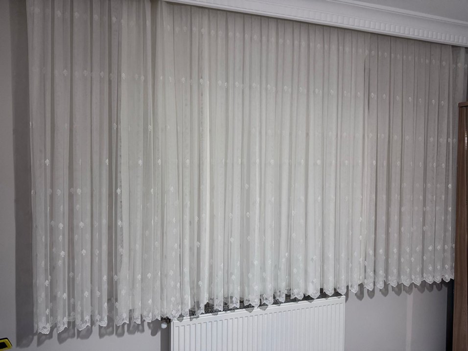 1 senelik kusursuz tüldür Beyaz, düz ve klasik tarzda, sade ve temiz bir görünüm sunan hafif fon perde.
