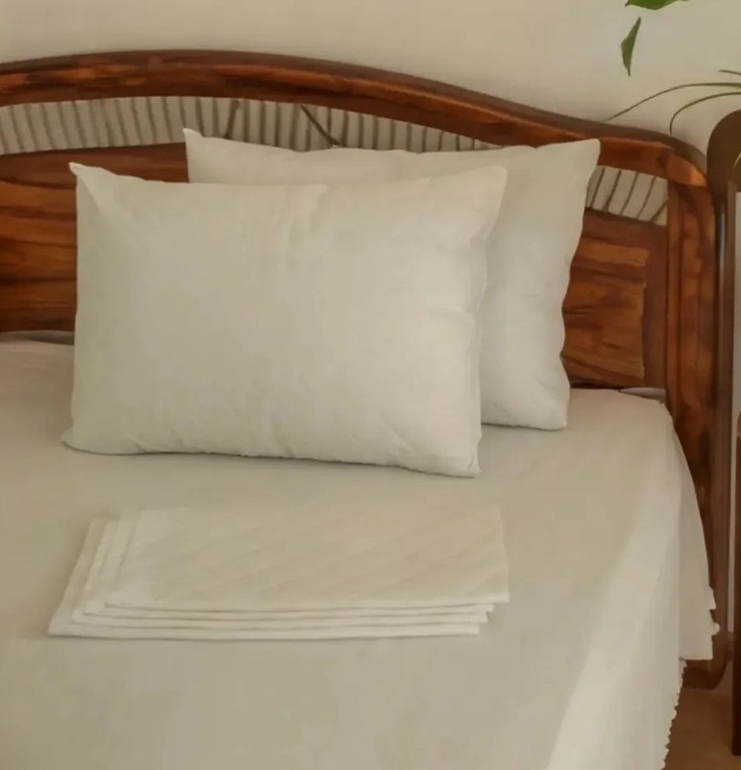 Beyaz renkte, düz desenli yastık ve yastık kılıfı. sıvı geçirmez Temiz ve sade görünüm sağlar, hafif ve yumuşak renk tonuna sahiptir. ️