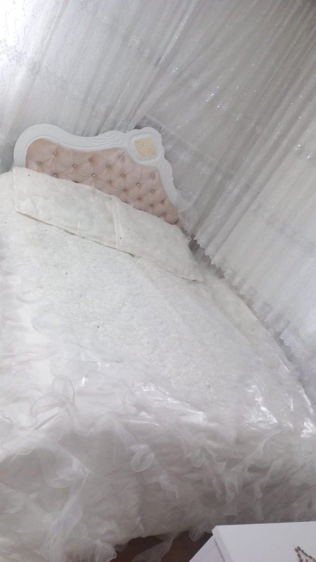 Yumuşak dokulu, düz desende beyaz yatak örtüsü, ince fırfırlı kenar detaylarıyla sade bir şıklık sunar. ️