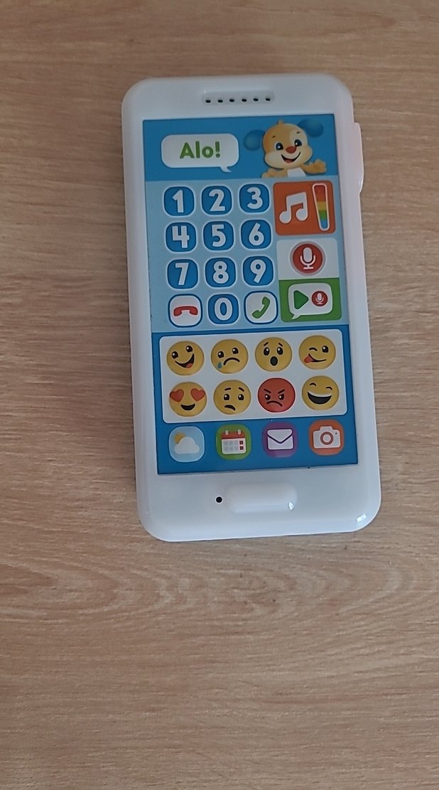 Bu beyaz eğitici oyuncak telefon, sayısal tuşlar, emoji simgeleri ve müzik kontrolleri ile çocukların oyunla öğrenmesini sağlar. Renkli grafiklere sahip ekran ve etkileşimli tuşlar içerir.