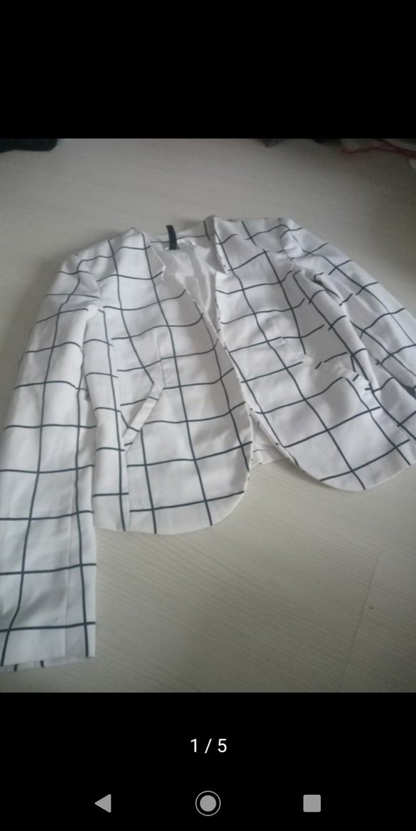 Beyaz renkte, ekose desenli kadın blazer ceket, kesik yaka ve düğmeli tasarıma sahip. Uzun kollu, midi boy ve regular fit kesimlidir. ölçü isteyene atarım