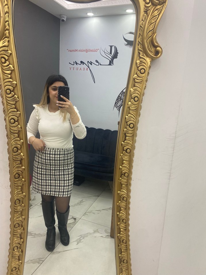 Yün kumaştan, beyaz ekoseli, normal boy fitted midi etek, gündelik kullanıma uygun