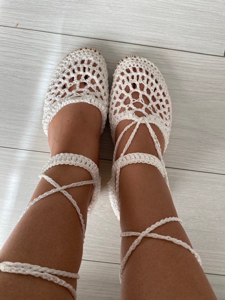 Beyaz El örgüsü tığ işi kadın sandalet