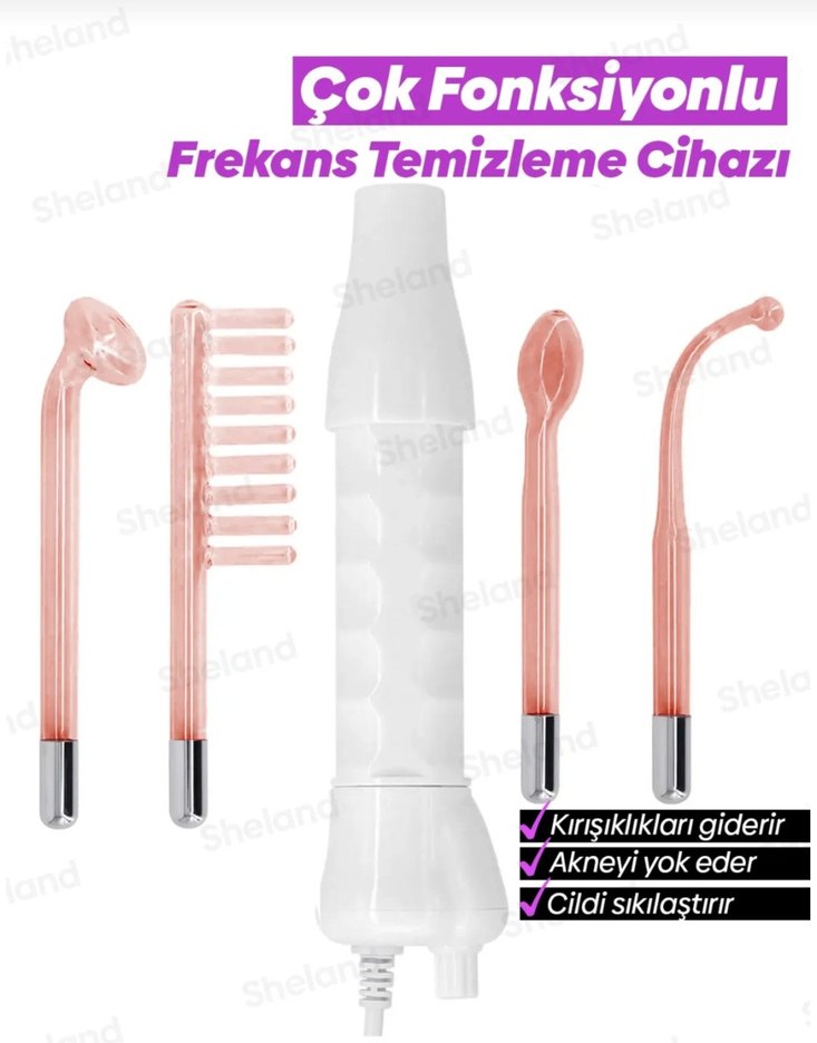 Beyaz el tipi yüz temizleme cihazı, aksesuarlar ve kullanım kılavuzu ile birlikte. Güç kablosu ve çeşitli başlıklar içerir. satmamın sebebi üşengeç biriyim düzenli kullanmadigimdan satıyorum. kusuru yok bir kez saçım icin kullandım sonrasında satma kararı aldım