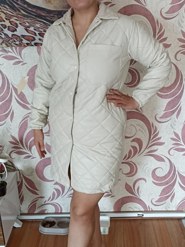 Kullanışlı. sadece arkasinda ufak leke var ama belli belirsiz. gorsele koydum. Beden S. ama 85 kiloda gorseldeki gibi duruyor. Beyaz renkte, notched lapel yaka ve uzun kollu kadına özel midi ceket. Rahat kalıp.