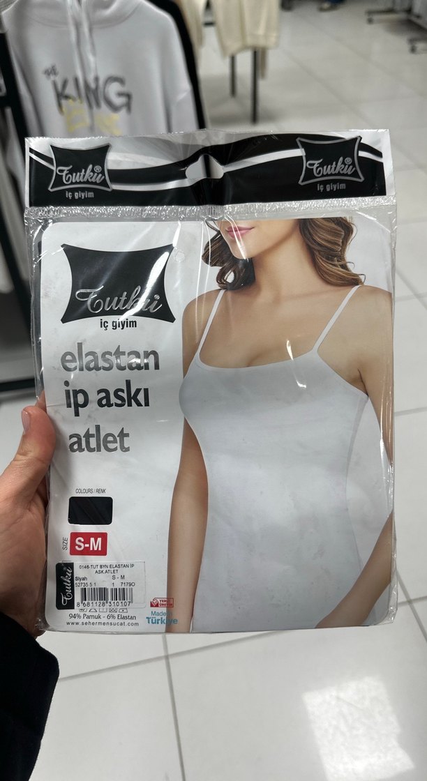 Beyaz, elastan ip askılı, kısa boyda, minimalist tarzda kadın iç giyim atlet. Yumuşak ve esnek kumaştan üretilmiştir. bedenleri mevcuttur