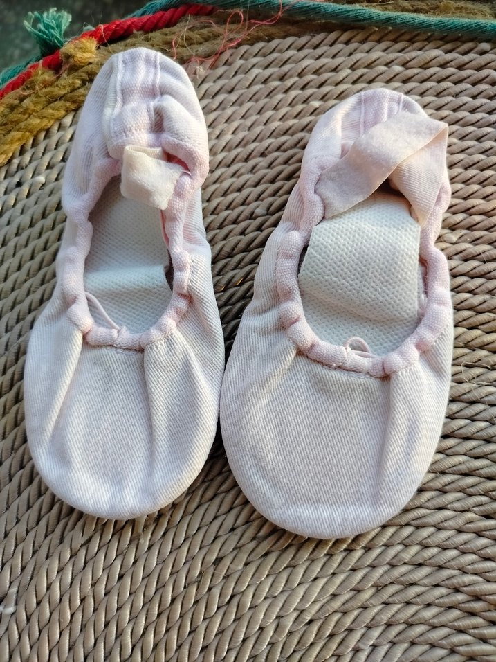 Beyaz elastik detaylı kız bale ayakkabısı, pastel bohem tarzda yumuşak kauçuk tabanlıdır.