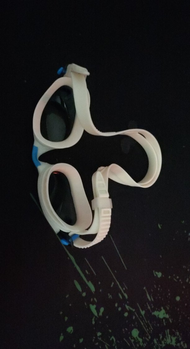 Elastik bantlı beyaz yüzücü gözlüğü, minimalist ve spor için uygun tasarıma sahiptir. ♂️