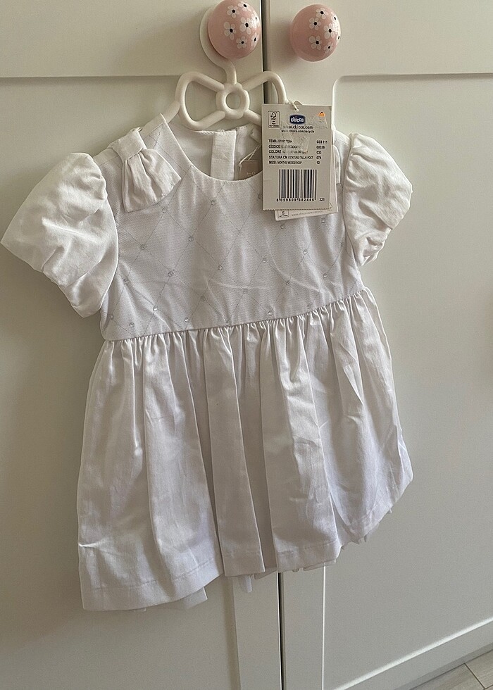 Kız bebek beyaz elbise Etiketi üzerindedir. Hiç giyilmedi